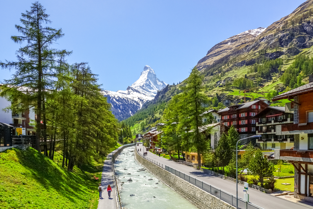午前チューリッヒ空港到着 ※午後着のフライトの場合は、チューリッヒに1泊して、翌日ツェルマットへ向かいます。 空港駅から鉄道にてツェルマットへ 所要時間:約3時間半 / 1~2回乗換え ツェルマット到着後、ご宿泊ホテルに荷物を預けて、観光にお出かけください。チェックイン前でも預かってもらえます。 ツェルマット 標高1605m 名峰マッターホルン(標高4478m)麓の世界的なアルペンリゾート。マッター谷の最も奥にあり、ガソリン車禁止の空気な綺麗な町には、土産店も沢山ありますので、町の散策もお楽しみください。 |